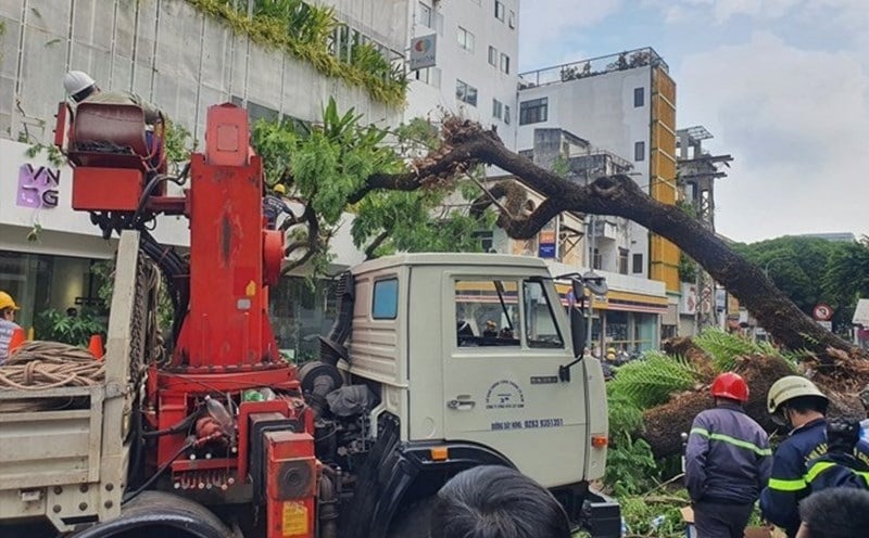 Ngoài ra, cần tránh giẫm lên những cây, cành cây bị đổ trên đường vì chúng có thể có kéo theo dây điện.