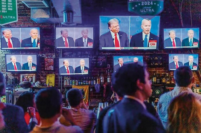 Người dân Mỹ theo dõi tranh luận trực tiếp trên kênh CNN giữa Tổng thống Joe Biden với cựu Tổng thống Donald Trump, ngày 27/6. (Nguồn: New York Times )