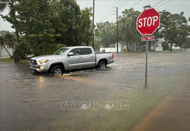Bão nhiệt đới Debby đổ bộ gây ngập lụt tại bang Florida, Mỹ ngày 5/8/2024. Ảnh: AP