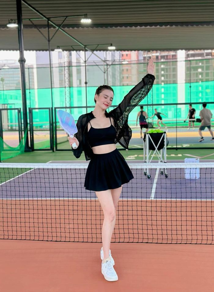 Mới đây, em gái Công Vinh gây chú ý với bộ ảnh khoe sắc gợi cảm khi chơi bộ môn Pickleball. Theo đó, em gái Công Vinh diện trang phục thể thao full đen, nhưng với cách thiết kế đầy quyến rũ.