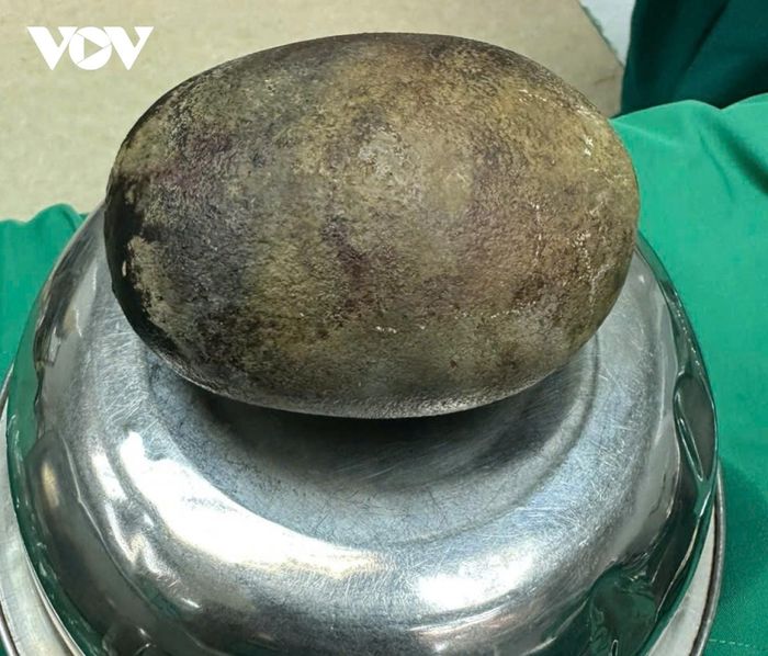 Ca phẫu thuật gặp nhiều khó khăn vì viên sỏi quá to và dính trong bướu bàng quang và chèn ép 2 miệng niệu quản nên e kíp phải mổ lấy viên sỏi một phần và cắt khối u bàng quang, giải phóng niệu quản để thông nước tiểu.