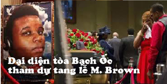 Obama đã long trọng cử một phái đoàn ba người đại diện tòa Bạch Ốc đến chia buồn và tham dự đám tang của tên cướp Michael Brown! Cả Obama và Biden đều đã không tham dự đám tang của sĩ quan quân đội cấp cao nhất đã hy sinh trong nhiệm vụ kể từ ngày 9/11, nhưng chúng nó đã gửi một phái đoàn đến dự đám tang của một tên côn đồ vô loại chỉ vì nó da màu đen.