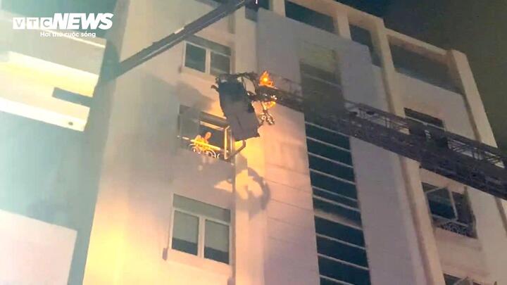 Lực lượng chữa cháy chia nhiều mũi dập lửa, đồng thời sử dụng xe thang cao khoảng 50m tiếp cận giải cứu những người mắc kẹt trên các tầng cao kịp thời.