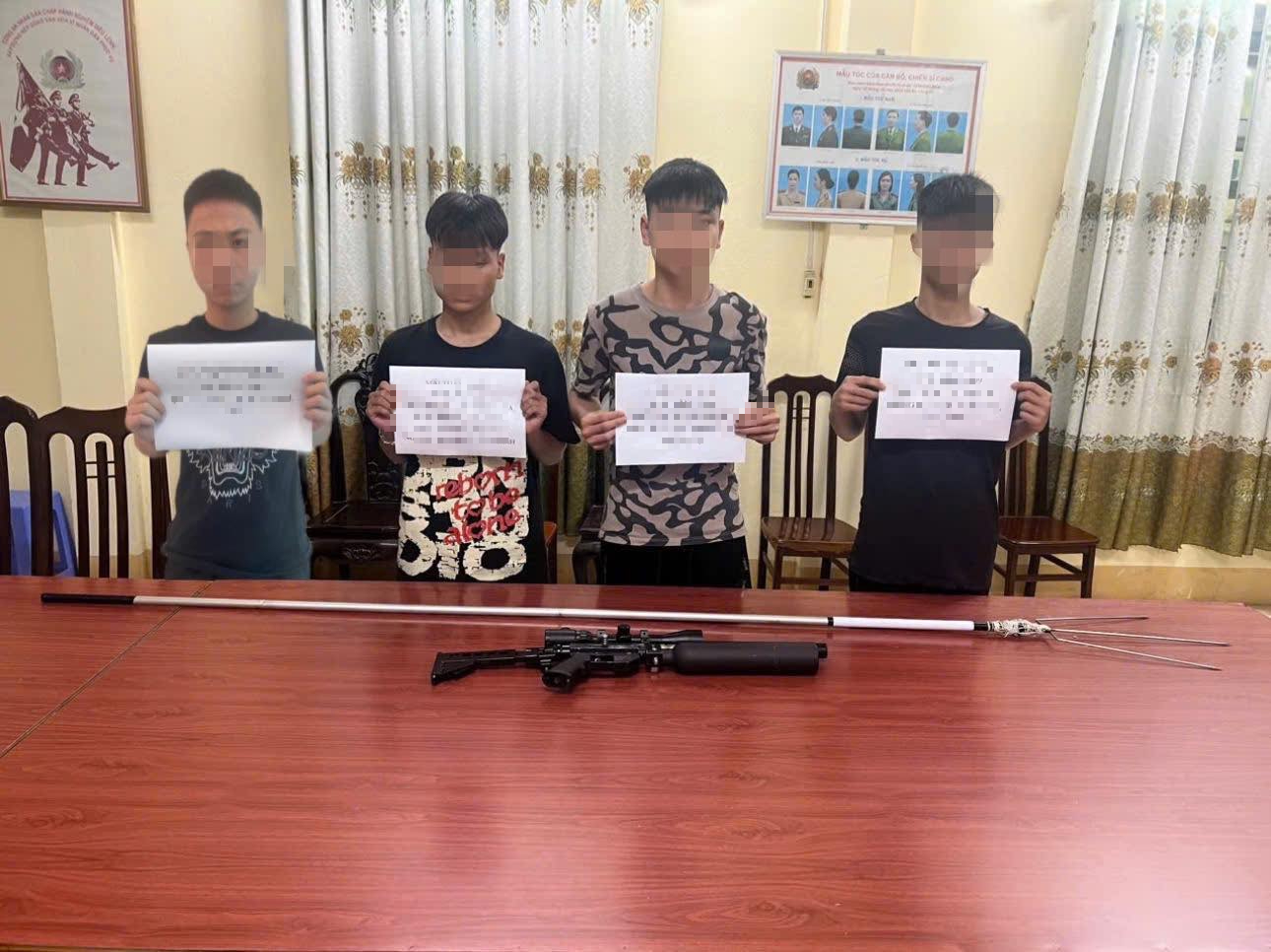 Trước đó, ngày 31/10, qua công tác nắm tình hình trên không gian mạng, lực lượng Công an thành phố Hòa Bình phát hiện một nhóm gồm 4 đối tượng thanh thiếu niên có hành vi điều khiển xe mô tô không gắn biển kiểm soát, mang theo vũ khí (1 súng hơi tự chế, 1 cây đinh ba bằng kim loại có chiều dài 2,3m) di chuyển trên các tuyến giao thông trên địa bàn thành phố.