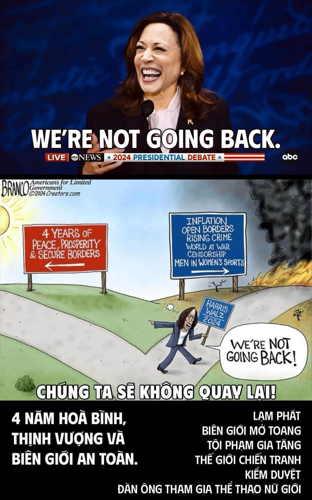 Bốn năm dưới nhiệm kỳ Biden-Harris đất nước Hoa Kỳ đã biến thành một quốc gia Tân Phát Xít, khi chính quyền đã dùng bạo lực để vũ khí hóa pháp luật, họ vượt qua cả Hiến Pháp để biến một thể chế Tam Quyền Phân Lập thành một thể chế duy nhất do đảng Dân Chủ thống trị, họ kiểm duyệt các tiếng nói tự do, truy tố một cách cực đoan những người chống đối, và bỏ tù vô thời hạn không qua xét xử những người vô tội bị họ vu khống là thành phần nổi loạn. Từ đây có thể thấy trách nhiệm trong nhiệm kỳ tới của liên danh Harris-Walz là sẽ nỗ lực để thúc đẩy đất nước nầy tiến sâu hơn vào nghèo đói của chủ nghĩa Cộng Sản.