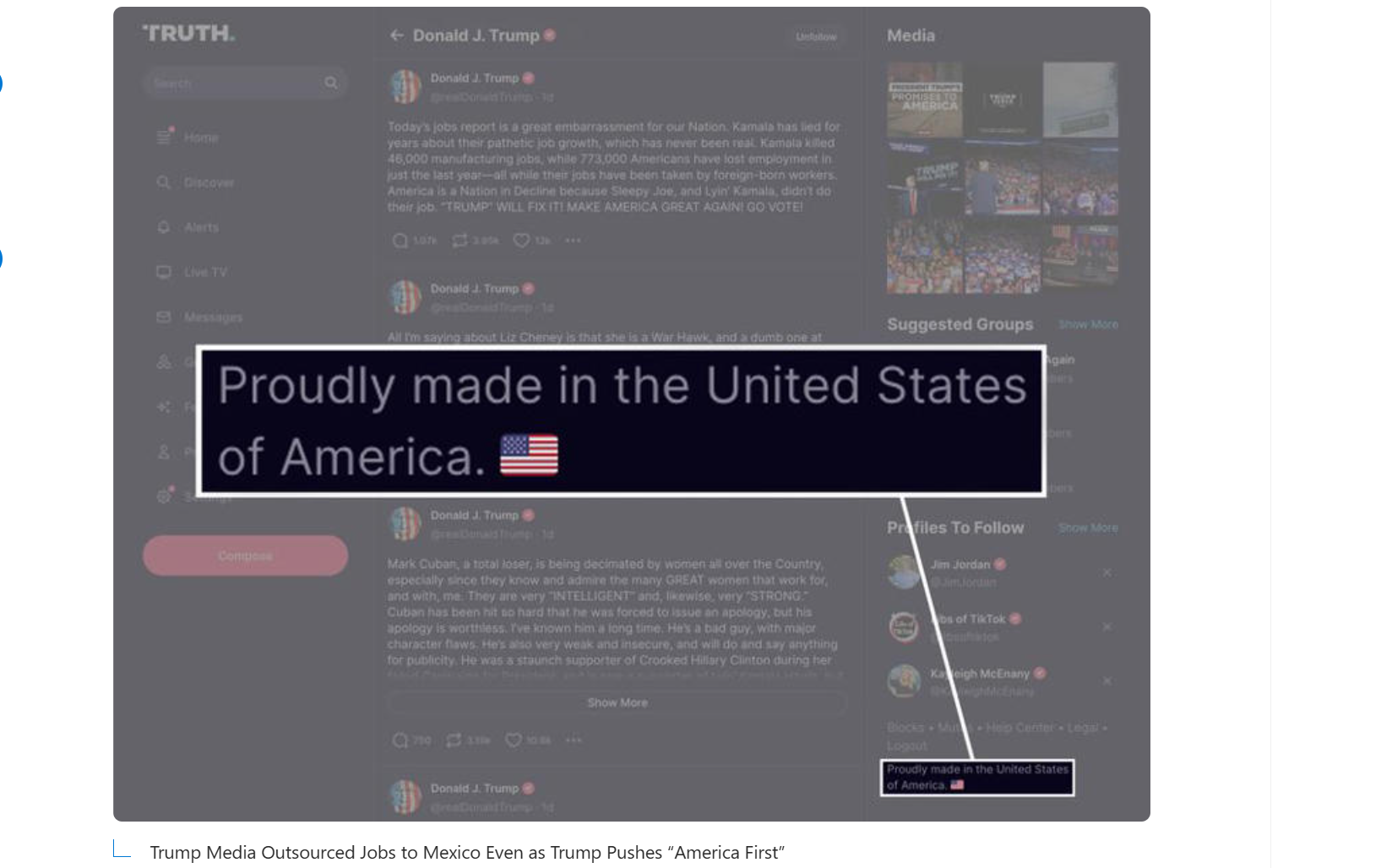 Trump Media Outsourced Jobs to Mexico Even as Trump Pushes “America First”