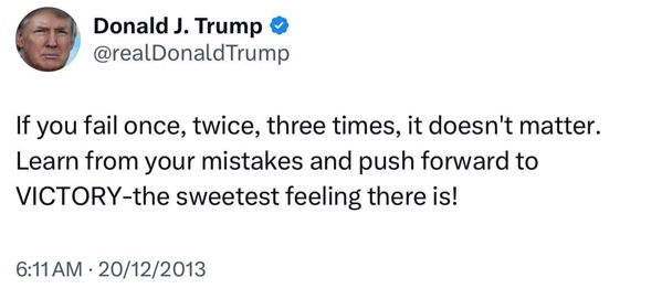 Câu nói kinh điển năm 2013 của ông Donald Trump và ông đã làm được đúng như lời nói khi ông là vị Tổng Thống thứ 2 trong lịch sử nước Mỹ: thất bại khi tái tranh cử, rồi lại tranh cử lần 3, sau đó thành công năm 2024 này.