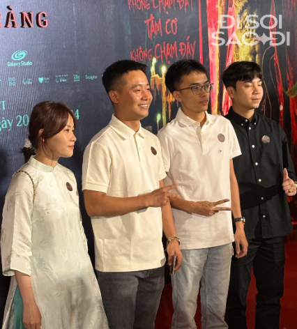 Về phần team Quang Linh, anh chàng và mọi người cũng tươi cười với nàng Hậu. Song dường như chưa quen với việc đi thảm đỏ và trở thành tâm điểm chú ý tại sự kiện nên cả team vẫn có phần ngại ngùng.