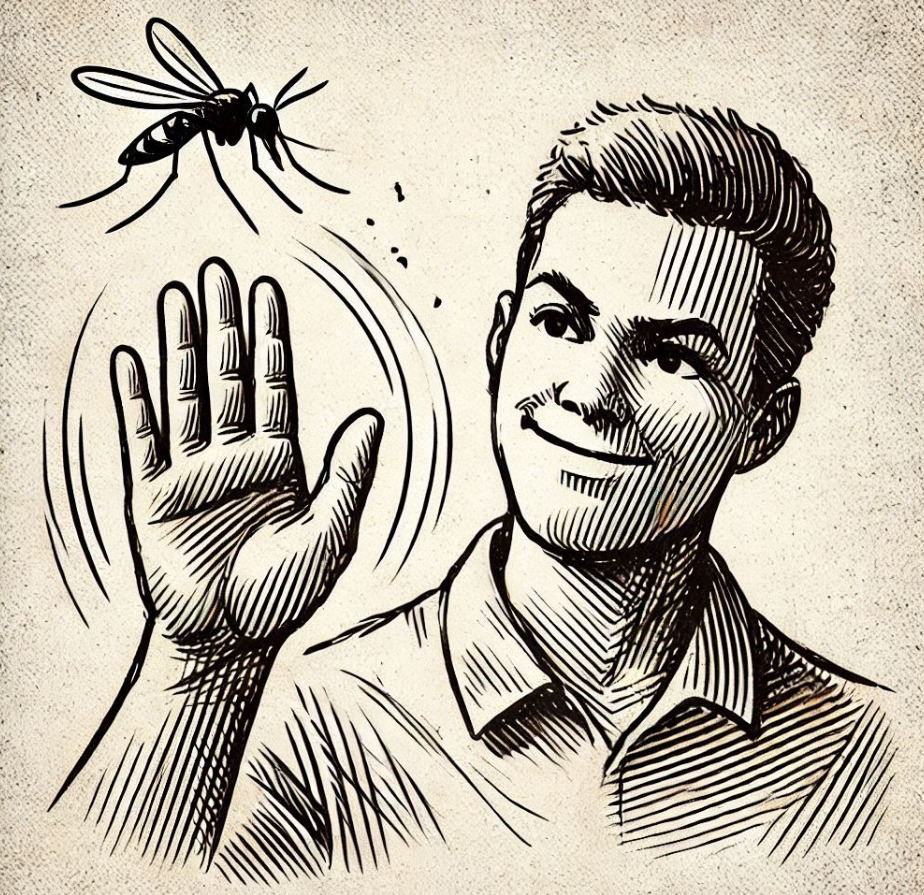 Một tiếng chát vang lên và con muỗi nằm bẹp trên tay người đàn ông.