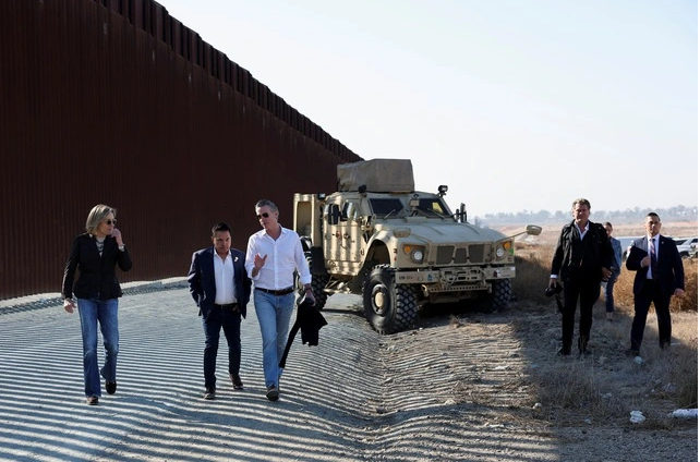 Giới chức bang California tại bức tường biên giới với Mexico tại San Diego hôm 5.12