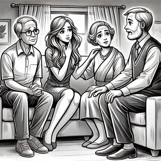 Quư ông vào nhà và ngồi xuống pḥng khách cùng cô gái và bố mẹ cô.