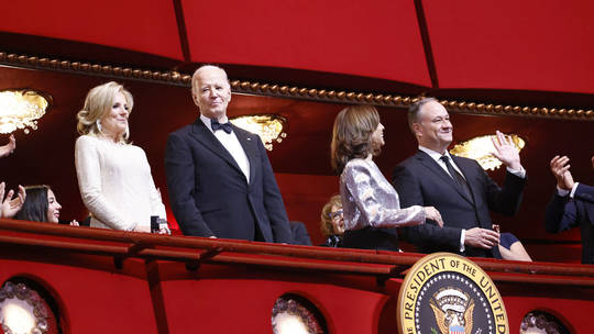 Vợ chồng ông Biden và vợ chồng bà Harris trong một buổi lễ hồi đầu tháng 12. Ảnh: