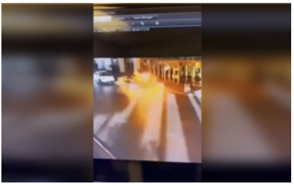 Một video đã xuất hiện trên mạng xã hội cho thấy chiếc xe bốc cháy. Đoạn clip dài một phút, dường như được quay từ sảnh khách sạn, cho thấy một chiếc Tesla Cybertruck đỗ ngay bên ngoài lối vào khách sạn, gần như bị lửa bao trùm hoàn toàn, với những cột khói xám dày đặc bốc lên.