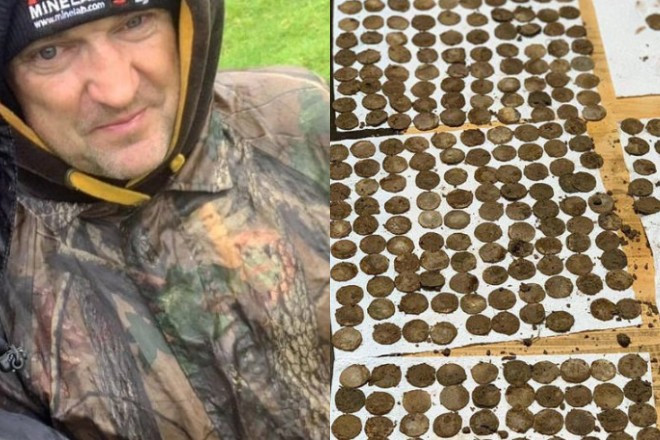 Hai người đàn ông tìm thấy "kho báu" với khoảng 400 đồng xu thời Trung cổ trên một cánh đồng.