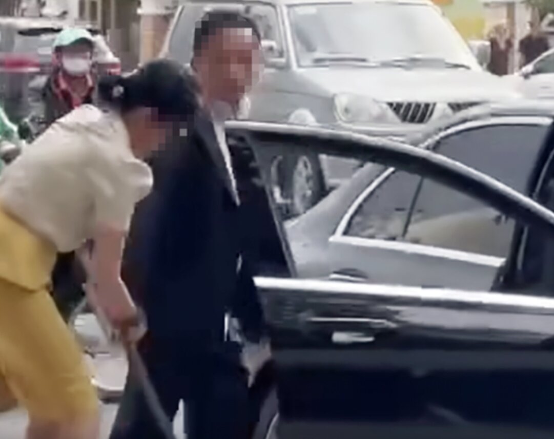 Phát hiện sự việc, một nữ công nhân môi trường đô thị đã nhắc nhở ông B. Thấy vậy, người đàn ông có lời lẽ xúc phạm, đồng thời đến mở cốp sau ô tô, lấy ra 1 cây kiếm, đe dọa nữ công nhân. Nữ đồng nghiệp đi cùng ông B. đến can ngăn, giữ lấy cây kiếm và đẩy ông này lên ô tô. Khi lên xe, nam doanh nhân vẫn tiếp tục lấy 1 chai nước suối ném về hướng nhân viên môi trường rồi điều khiển xe rời đi.