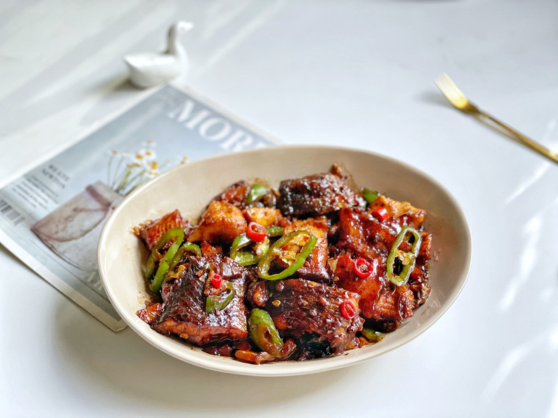 Bước 2: Chiên cho cá chín vàng đều thì vớt ra. Để lại một ít dầu ăn trong chảo, cho tỏi băm, gừng và tương đậu vào xào thơm. Tiếp đó cho cá đã chiên cùng nước tương, dầu hào, nước sôi vào đảo đều. Tiếp đó thêm ớt xanh và ớt đỏ vào đảo chung. Om cho nước cạn bớt và cá thấm đều gia vị thì tắt bếp.