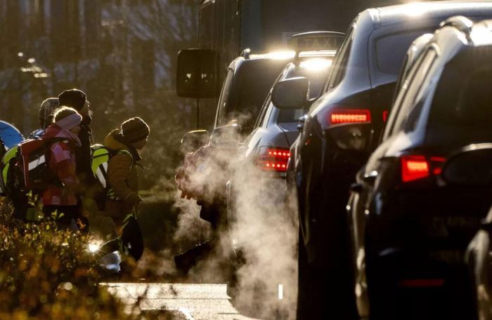 Xe cộ nhả khí thải trên đường phố ở Frankfurk, Đức. Các hãng xe châu Âu khó đáp ứng mục tiêu khí thải của EU do doanh số xe điện của họ còn thấp Ảnh: AP