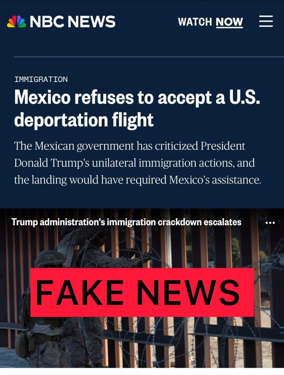 -Đài NBC bị dán nhãn tin xạo khi loan tin Mexico không cho máy bay Mỹ hạ cánh vì không muốn nhận lại người di dân lậu