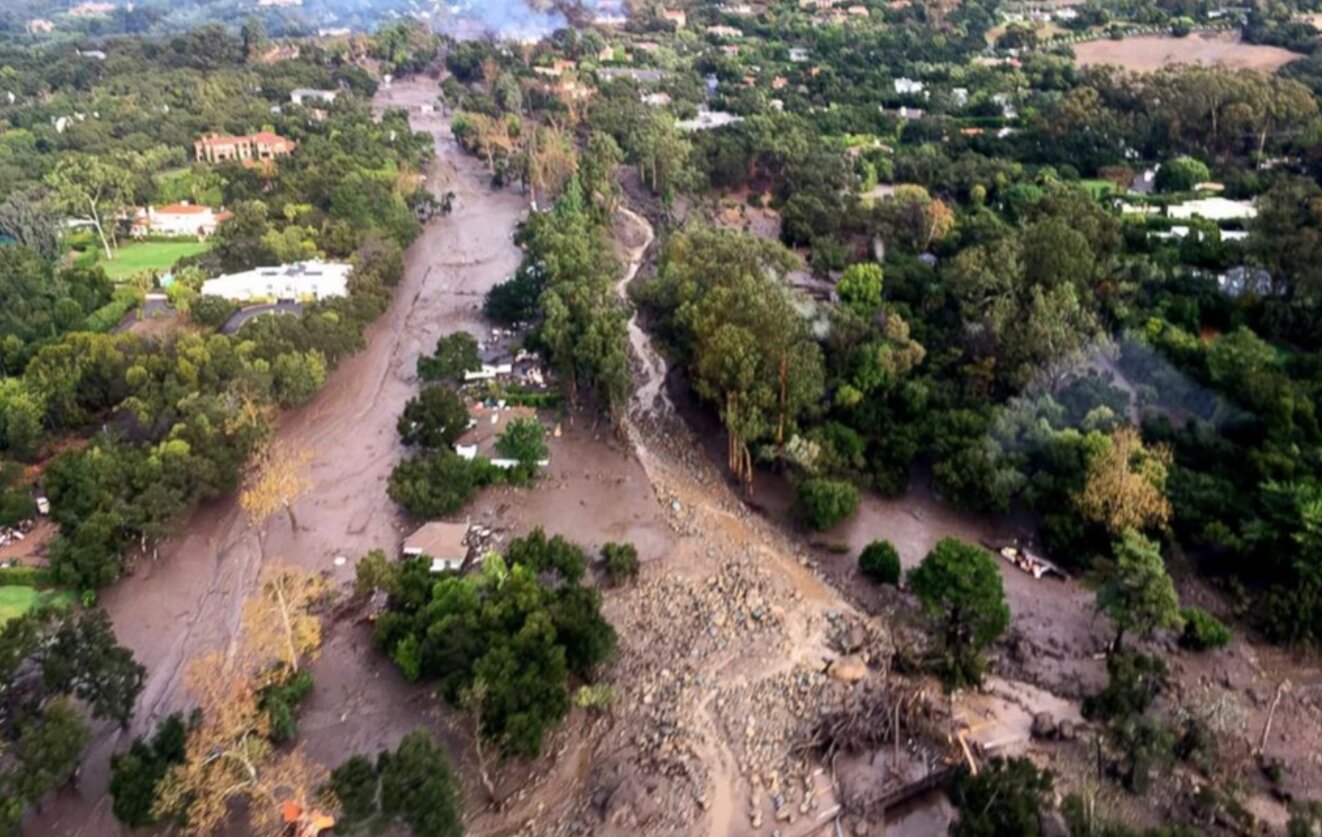 Một số khu vực ở miền nam bang California (Mỹ) sẽ đối mặt nguy cơ lũ quét, sạt lở đất trong cuối tuần này. Ảnh minh hoạ: lũ lớn cuốn theo bùn, đất, đá sau trận cháy rừng tháng 1-2018 tại California. Ảnh: ABC NEWS
