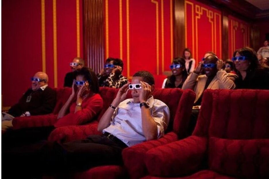 Gia đình Tổng thống Barack Obama xem phim 3D tại rạp chiếu phim ở Nhà Trắng, thủ đô Washington, D.C (Mỹ). Ảnh: NHÀ TRẮNG
