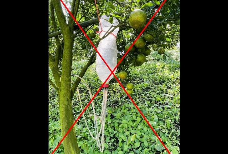 Loại bỏ viên nang chỉ lấy bột, hòa tan với nước để qua 1 đêm rồi lọc bỏ bã. Cho vào bình và tiêm 3 lần trong năm, họ cho rằng nếu không cam sẽ ngả màu vàng và chết.