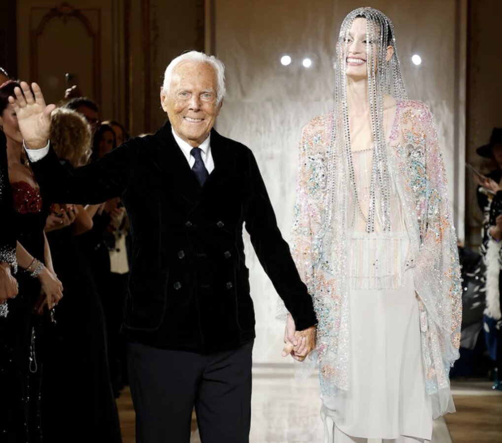 Tỷ phú, nhà thiết kế thời trang Giorgio Armani chào khán giả trong một buổi diễn thời trang hồi cuối tháng 1 tại Paris. Ảnh: Hola