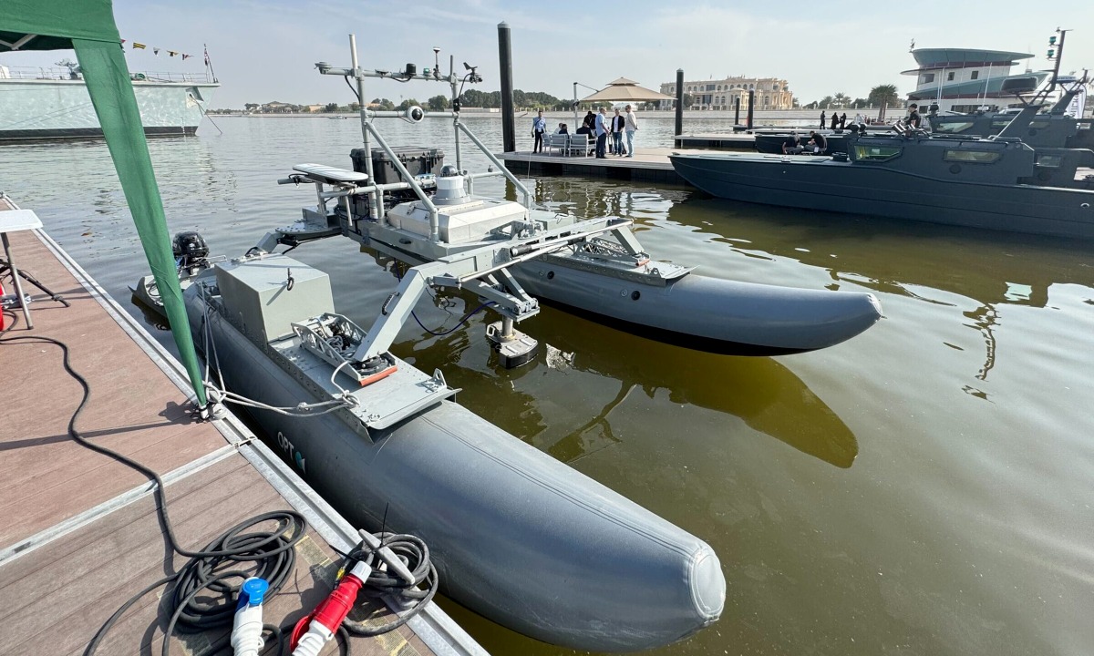 Xuồng không người lái dạng catamaran (hai thân đặt song song với nhau) được trưng bày ở triển lãm NAVDEX. Ngoài UAV tự sát, xuồng không người lái cũng là vũ khí gây chú ý trong cách xung đột gần đây, khi được triển khai rộng rãi tại xung đột Ukraine và chiến dịch của lực lượng Houthi ở Biển Đỏ.