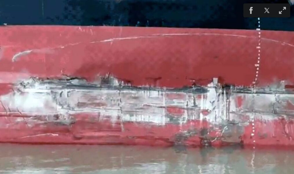 Thiệt hại trên tàu Olavo Bilac sau vụ va chạm trong bức ảnh đăng ngày 13/3. Ảnh: X/AlCaPreNews