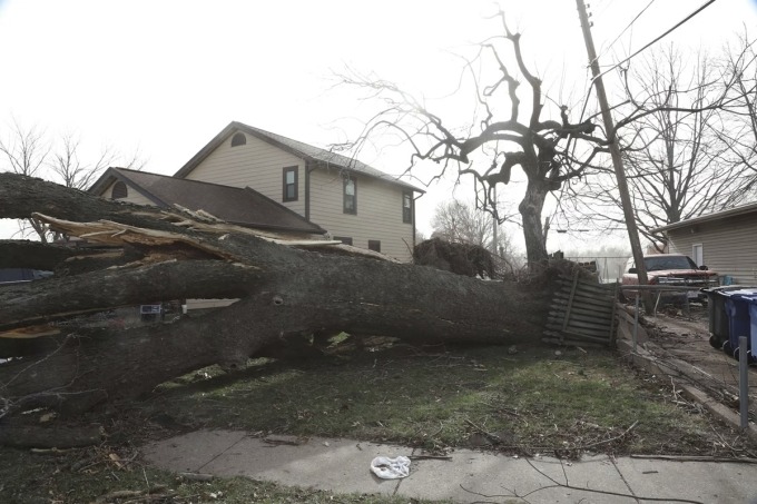 Cây cối đổ gục, nhà bị hư hại do mưa bão và lốc xoáy ở Missouri ngày 14/3.