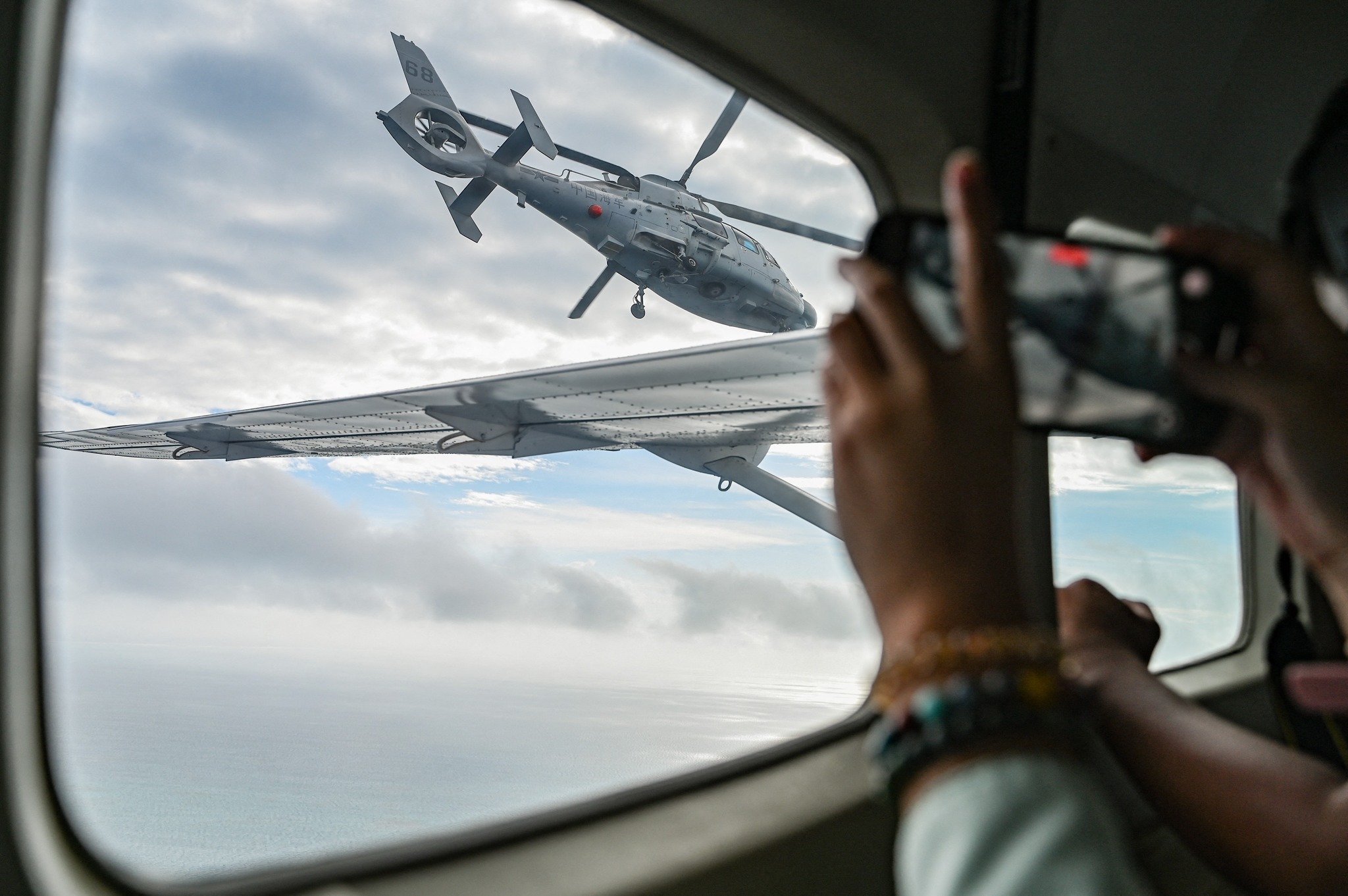 Trực thăng Hải quân Trung Quốc bay sát máy bay của Cục Thủy sản và Tài nguyên Thủy sản Philippines ở Biển Đông hôm 18/2.