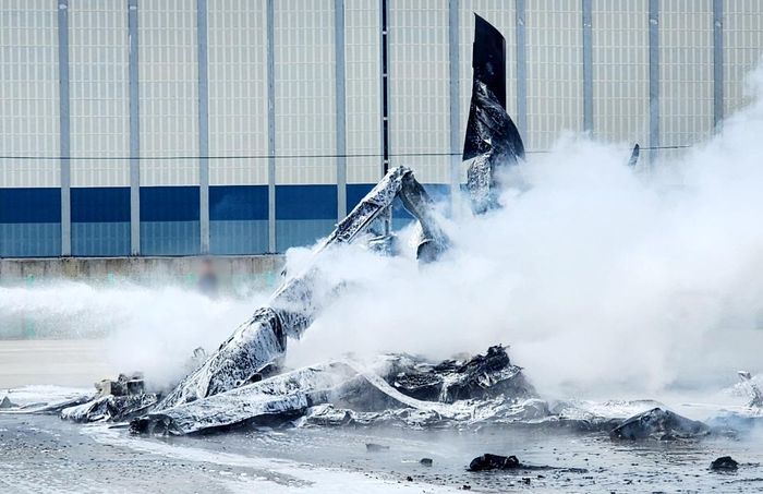 Cả trực thăng và máy bay không người lái Hàn Quốc đều bị thiêu rụi sau va chạm. (Ảnh: Korea Herald)