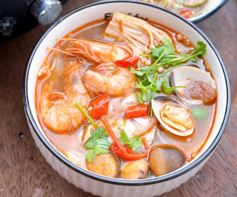 Nếu bạn là tín đồ của những món nước nóng hổi, chua cay đậm đà, thì bún Thái hải sản chắc chắn sẽ chinh phục khẩu vị của bạn ngay từ lần đầu thưởng thức. Sự kết hợp hài hòa giữa vị chua thanh của me, chút cay nồng của ớt, cùng vị ngọt tự nhiên từ tôm, mực, nghêu… tạo nên một bát bún hấp dẫn khó cưỡng.