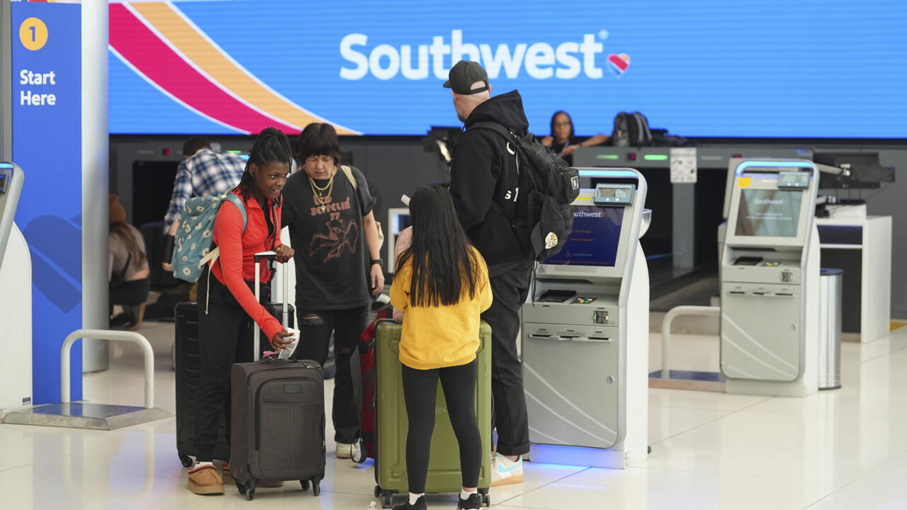 (Ảnh minh họa) Hành khách làm thủ tục tại một ki-ốt tại Sân bay Quốc tế Denver, Mỹ, ngày 27 tháng 2 năm 2025. AP - David Zalubowski