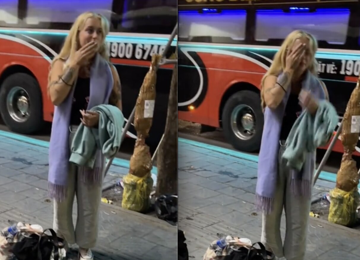 Trước mắt cô là những balo hành lý cồng kềnh, không có chỗ để nghỉ ngơi và cũng chẳng biết phải đi đâu vào thời điểm này. Khoảnh khắc ấy được người bạn ghi lại một video ngắn, và sau khi chia sẻ đã ngay lập tức khiến cộng đồng mạng bàn tán xôn xao.