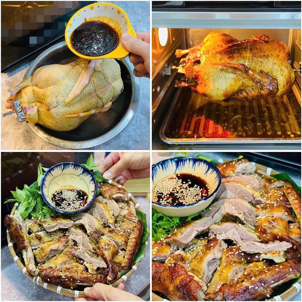 Lò nướng: Làm nóng lò ở 200°C, nướng khoảng 45–60 phút, phết mật ong vài lần trong quá trình nướng.