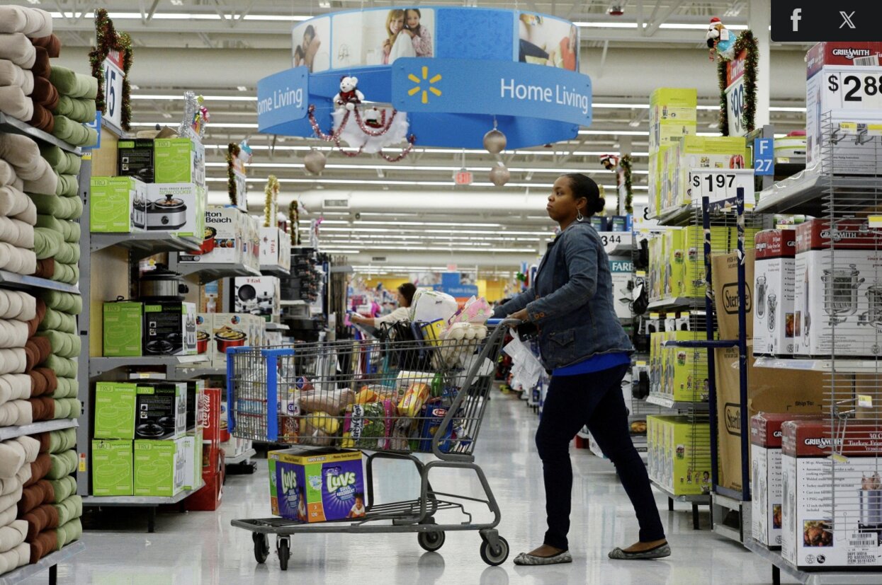 Khách mua sắm tại siêu thị Walmart ở Porter Ranch, Los Angeles, Mỹ. Ảnh: Reuters
