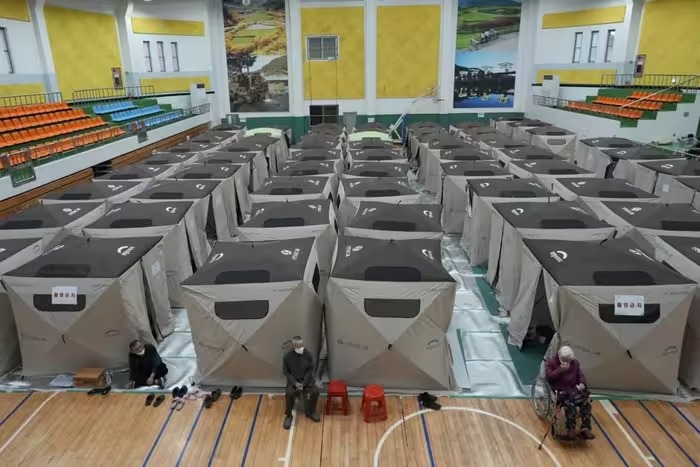 Các lều trú ẩn dành cho cư dân phải sơ tán khỏi các đám cháy rừng ở Uiseong, ngày 27/3. Ảnh: AP