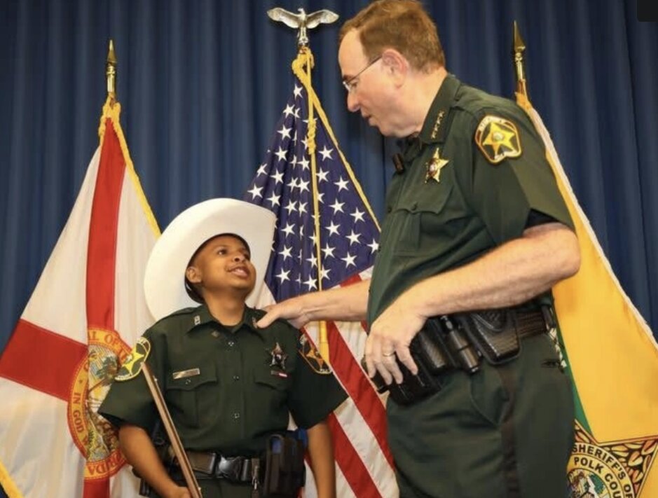 DJ Daniel (trái) tuyên thệ nhậm chức sĩ quan cảnh sát danh dự tại hạt Polk, bang Florida cuối tuần trước. Ảnh: Facebook/Văn phòng cảnh sát hạt Polk