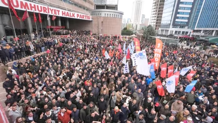 Những người tham gia biểu tình đã vẫy cờ Thổ Nhĩ Kỳ và giơ biểu ngữ ủng hộ đảng CHP. Trong cuộc biểu tình, lãnh đạo CHP là ông Ozgur Ozel cho biết hàng triệu người Thổ Nhĩ Kỳ đang tìm cách trả tự do cho ông Imamoglu và tổ chức bầu cử.