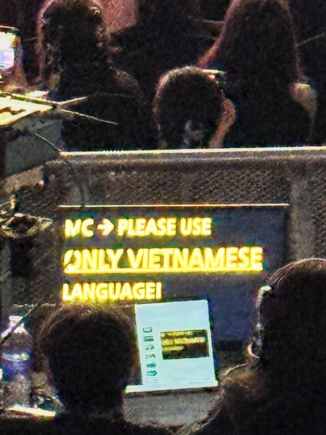Sự việc chưa lắng xuống thì mới đây, dân tình lại truyền tay nhau tấm ảnh được cho là chụp từ phía sau của BTC. Những người đăng tải tấm ảnh cho biết, khi MC Khánh Vy giao tiếp tiếng Hàn và tiếng Anh với Jisoo trên sân khấu, tấm bảng đã hiện dòng chữ: "MC: Please use only Vietnamest Language!" (dịch: MC: Vui lòng chỉ sử dụng tiếng Việt).