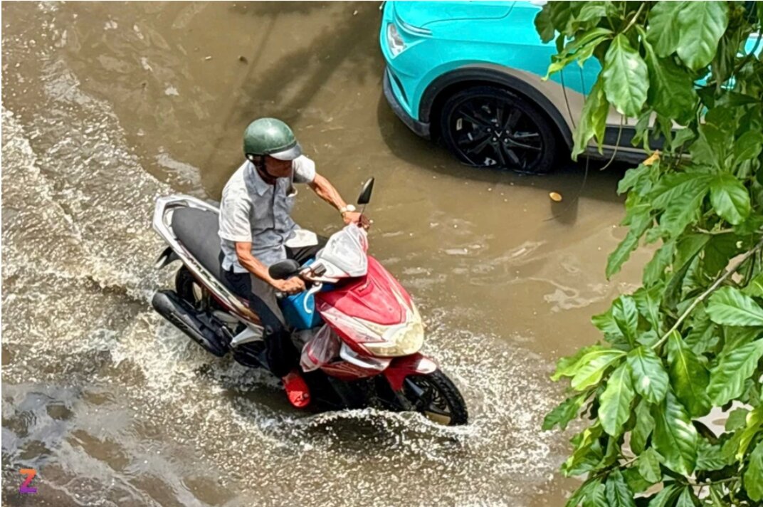 Sáng 4/4, khi dắt xe máy ra đi làm, chị Nguyễn Thùy (ở quốc lộ 13, TP Thủ Đức) vẫn thấy con hẻm trước nhà hoàn toàn khô ráo. Tuy nhiên, đến trưa, lúc chị vòng về nhà lấy đồ, gần 1/3 con hẻm đã ngập nước.