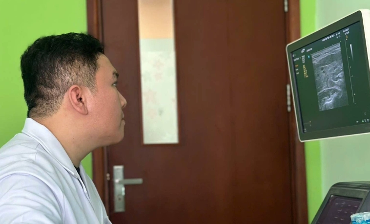 Bác sĩ siêu âm kiểm tra cho bệnh nhân. Ảnh: Bác sĩ cung cấp