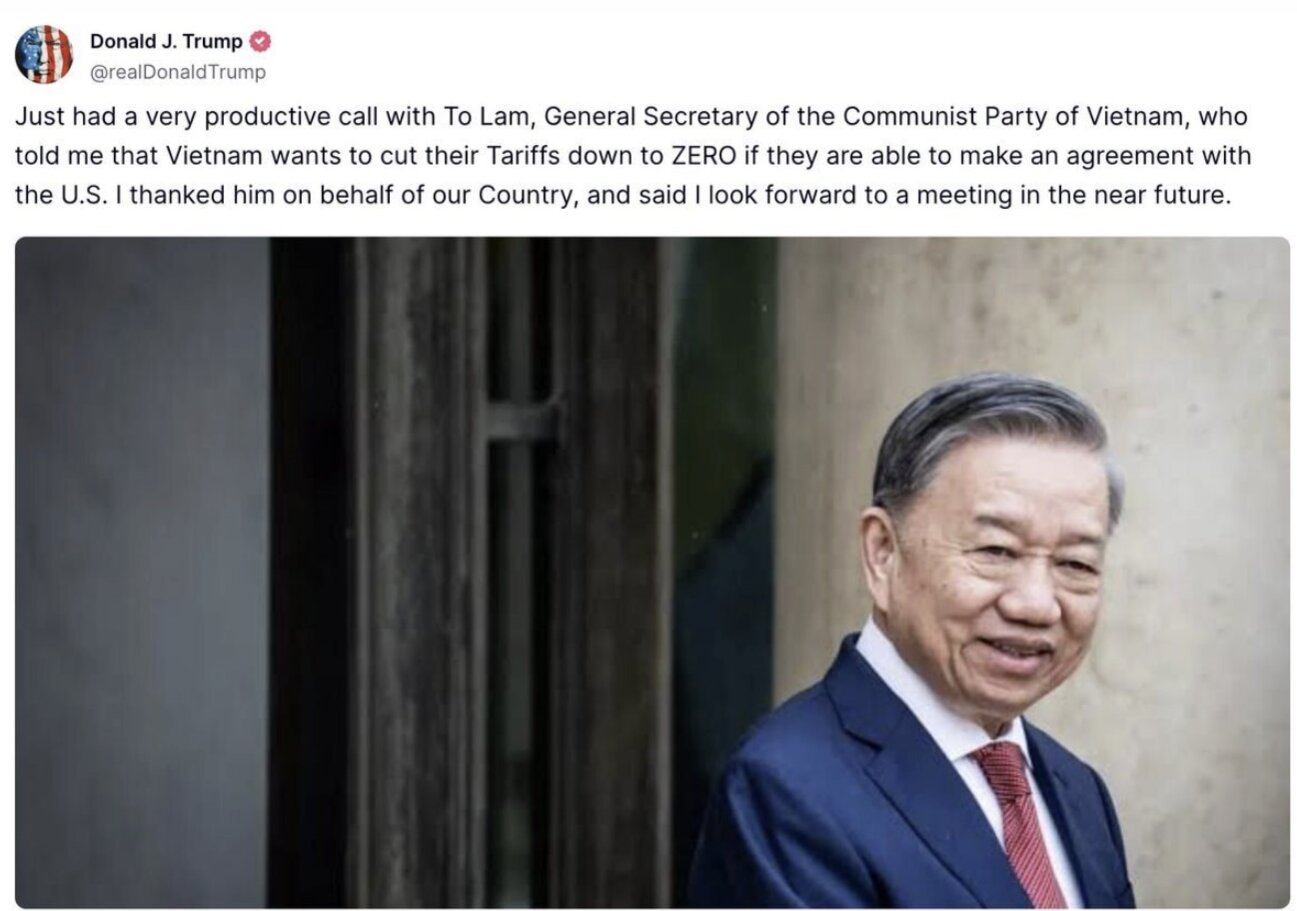 Tổng Bí thư Tô Lâm đã có cuộc điện đàm với Tổng thống Hoa Kỳ Donald Trump.