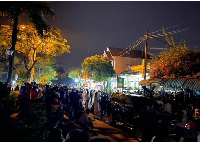 Bên ngoài con hẻm, hàng nghìn người dân địa phương tập trung theo dõi, bàn tán xôn xao.