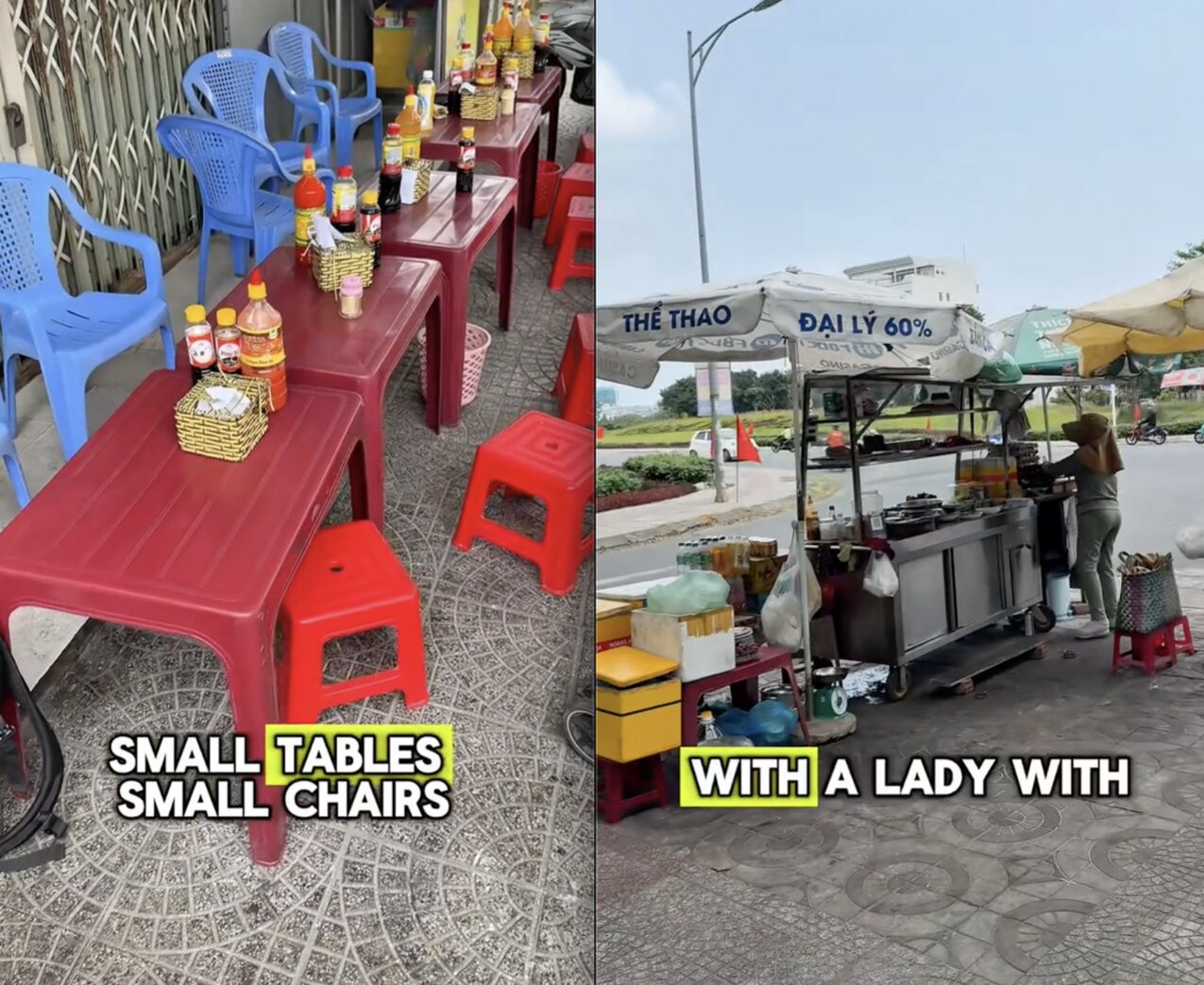 Cụ thể, vị khách Tây này nói rằng, để biết quán ăn đó có ngon không, hãy nhìn vào vài đặc điểm: Những chiếc bàn nhỏ, những chiếc ghế nhỏ, được đặt ngay cạnh một con đường đông xe cộ, kế bên là một người phụ nữ đang cầm dao, chế biến thịt, trứng... ngay tại chỗ.
