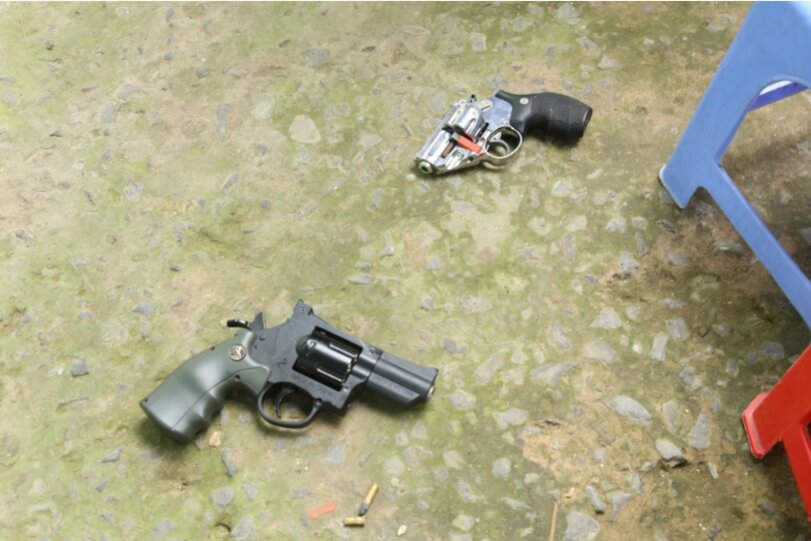 Hai khẩu súng của Lê Thành Vinh tại hiện trường. Ảnh: Yên Khánh