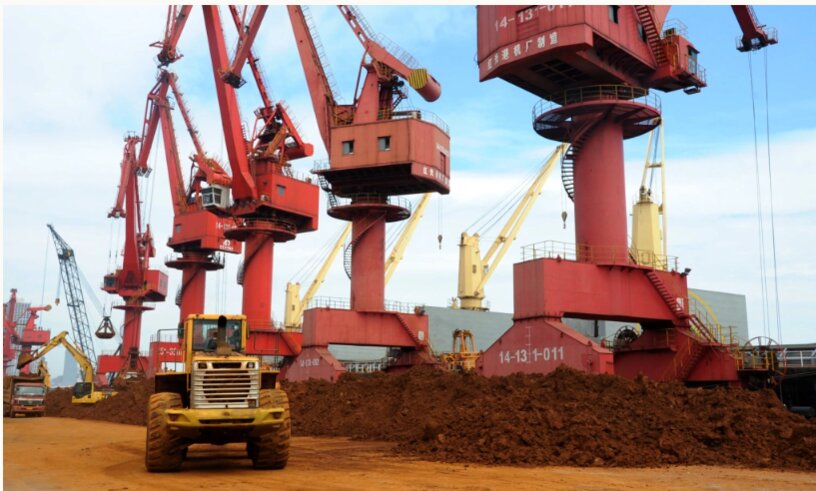 Đất hiếm chất đống tại bến tàu ở thành phố Liên Vân Cảng, Trung Quốc hồi năm 2016. Ảnh: AFP