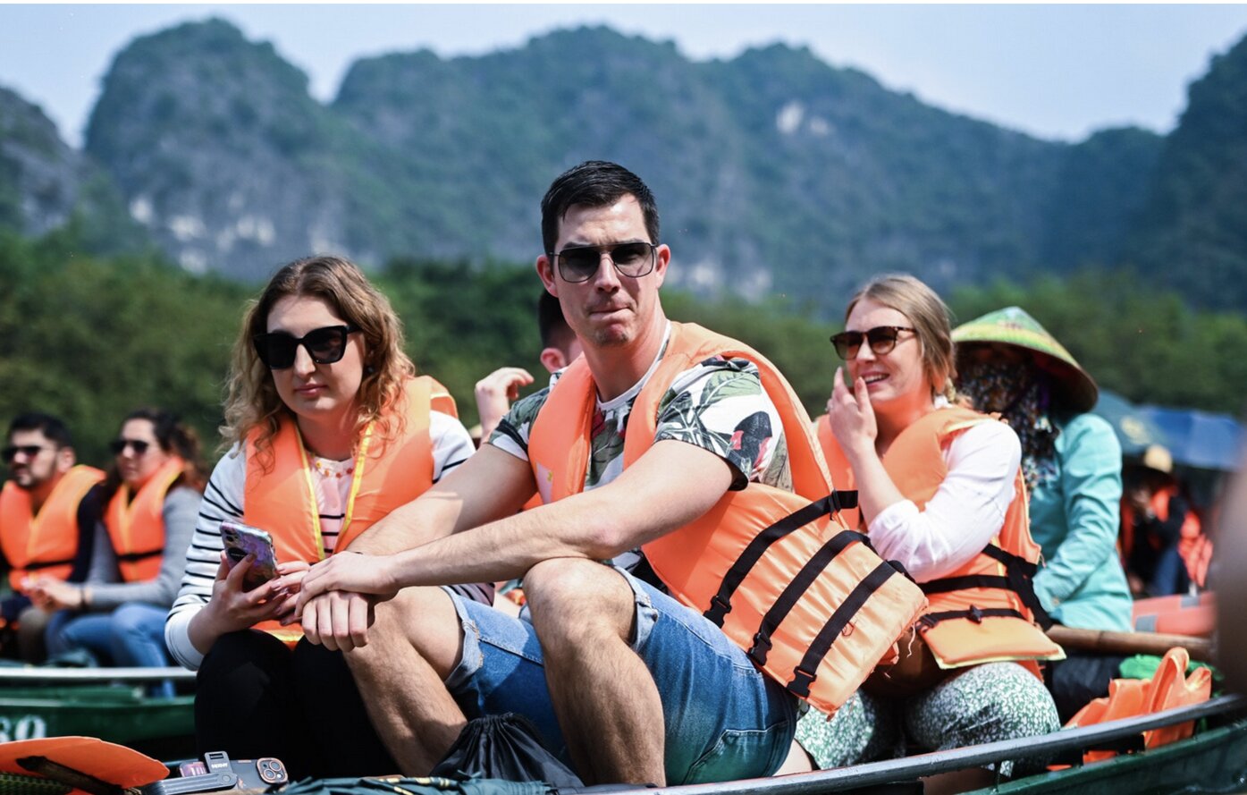 International tourists enjoy a boat tour in Trang An. Photo: Thach Thao