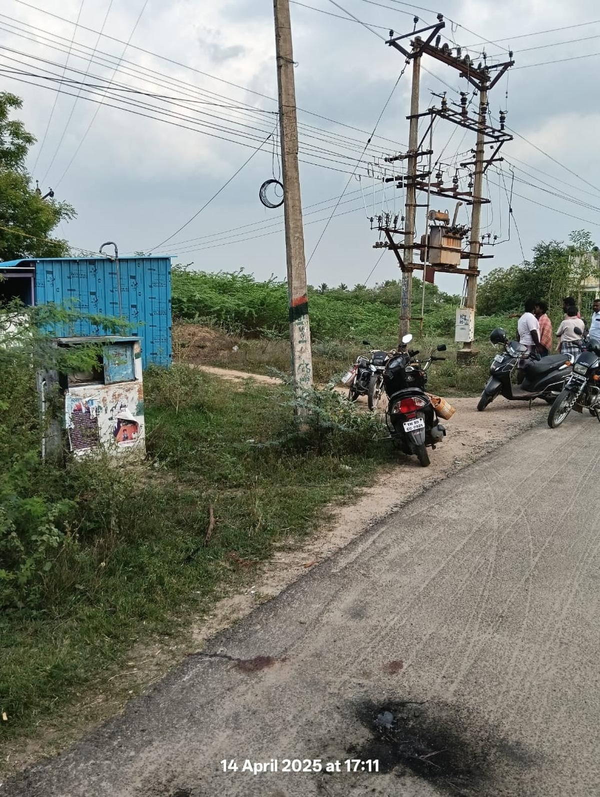 Sự việc đau lòng bắt nguồn từ việc anh Tirupathi, một người vận hành hệ thống âm thanh công cộng, đang lắp đặt đèn chiếu sáng cho lễ hội 45 ngày tại đền Mariamman địa phương. Ngôi đền này vừa tổ chức lễ vào tháng 3. Trong lúc lắp đặt, anh Tirupathi đã vô tình để dây đèn chạm vào đường dây điện cao thế khiến dây đèn bị nóng chảy và bốc cháy chỉ trong vài giây. Anh Tirupathi bị điện giật do tiếp xúc trực tiếp với dòng điện cao thế.