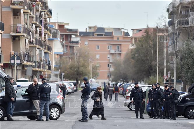 Cảnh sát Italy trong chiến dịch truy quét tội phạm tại quận Ostia ở Rome.